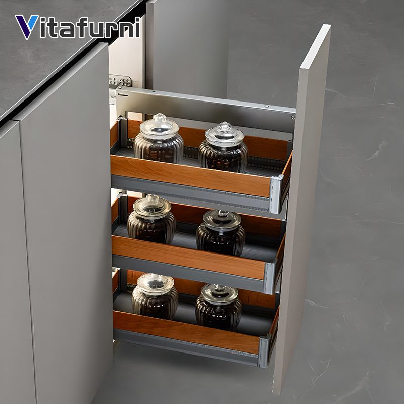 Vitafurni Wholesale Kitchen Hardware Accessories Cabinets 3 Tier Sliding Retractable Pull Out Kitchen Cabinet Organizer Storage