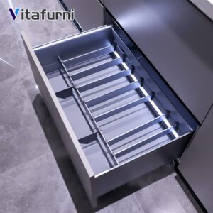 Vitafurni Factory Wholesale Cabinet Accessories Kitchen Pull Out Sliding Drawer Organizer Aluminum Partitioned Storage Solution