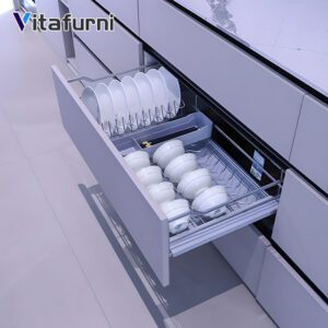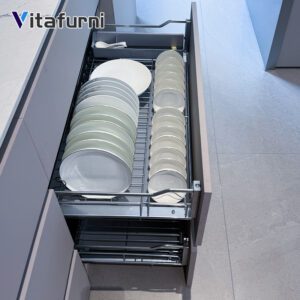 Vitafurni Customized Aluminium Furniture Cabinet Dish Rack Sliding Kitchen Pull Out Basket Organizer Storage Pantry Drawer