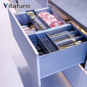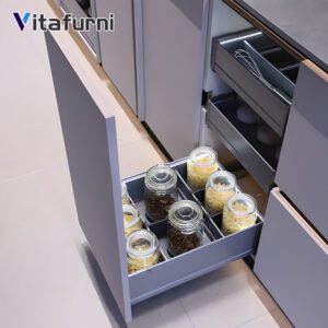 Vitafurni Customized Kitchen Cabinets Accessories Modern Drawer Basket Sliding Pull Out Pan Rack Concealed Unit Tidy Storage