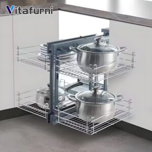 Vitafurni Hot Sale Furniture Accessories Hot Sale Double Layer Pull Out Basket Kitchen Cabinet Space Stainless Steel Storage