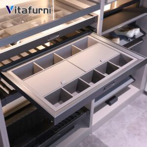 Vitafurni Custom Aluminum Furniture Jewelry Box Hidden Slide Flocked Fabric Closet Pull Storage Tray Factory Designed Wardrobe