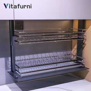 Vitafurni Modern Design Wholesale Kitchen Cabinets Accessory Elevating Retractable Lift Organizer Wall Storage Rack Solution
