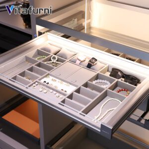 Vitafurni Customizable Premium Velvet Luxury Jewelry Drawer Organizer Storage Box Multi Compartment Wardrobe Aluminum
