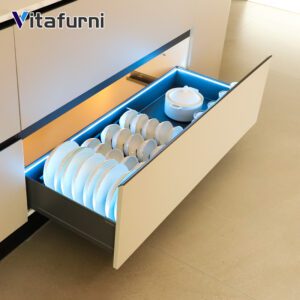 Vitafurni New Cabinet Kitchen Accessories Partitioned Dish Drawer Organizer Storage Aluminum Alloy Pull Out Basket with LED
